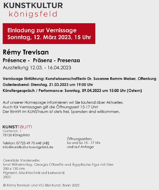 Die Kunstwerke von Rémy Trevisan sind 2023 in folgenden Ausstellungen vertreten: