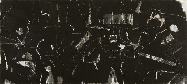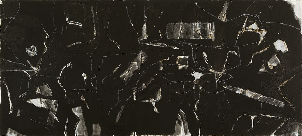 Schwarz/Schmetterling 1994 Mischtechnik, Pigment, Leinwand 100 x 200 cm |