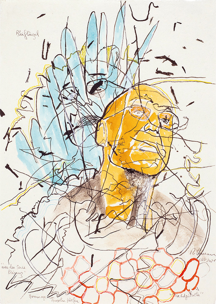 Hommage an Anselm Kiefer 2021 Mischtechnik auf Büttenpapier 42 x 29,7 cm Sammlung des Landkreises Rottweil |