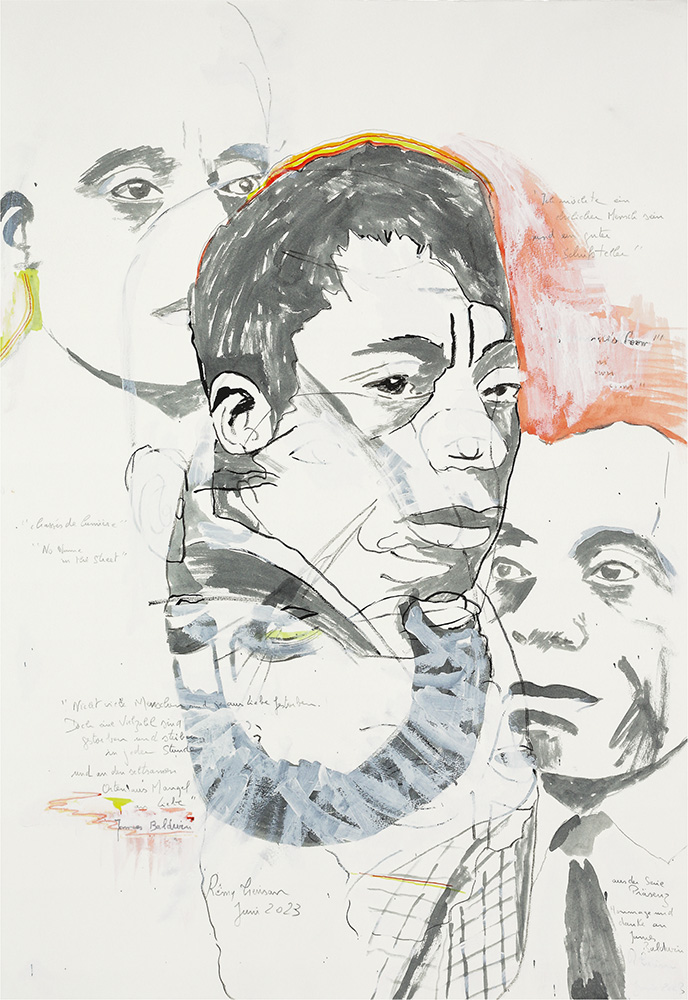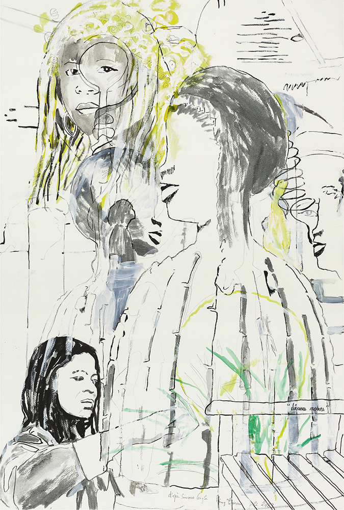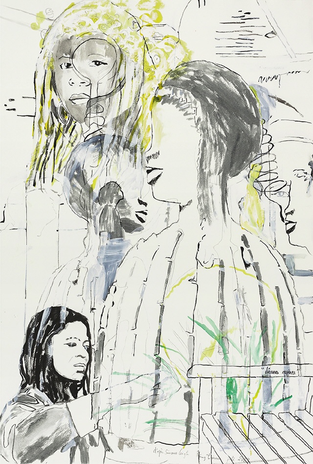 Hommage an Kerry James Marshall 2021 Mischtechnik auf Büttenpapier 42 x 29,7 cm Zum Begleittext -> |