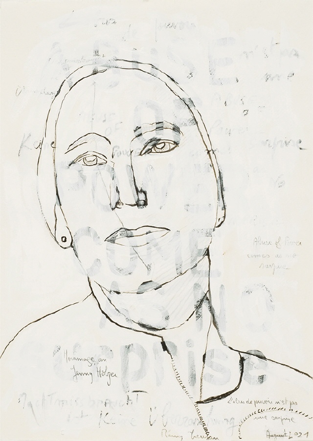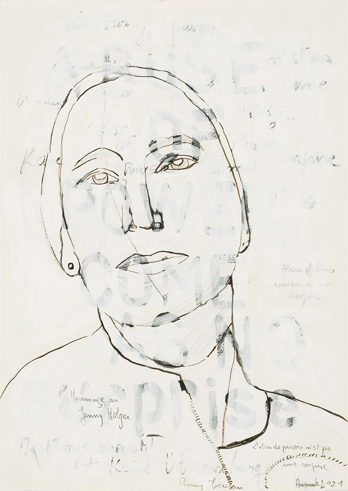 Hommage an Jennifer Holzer 2021 Mischtechnik auf Büttenpapier 42 x 29,7 cm Privatsammlung |