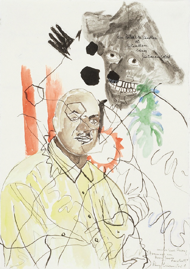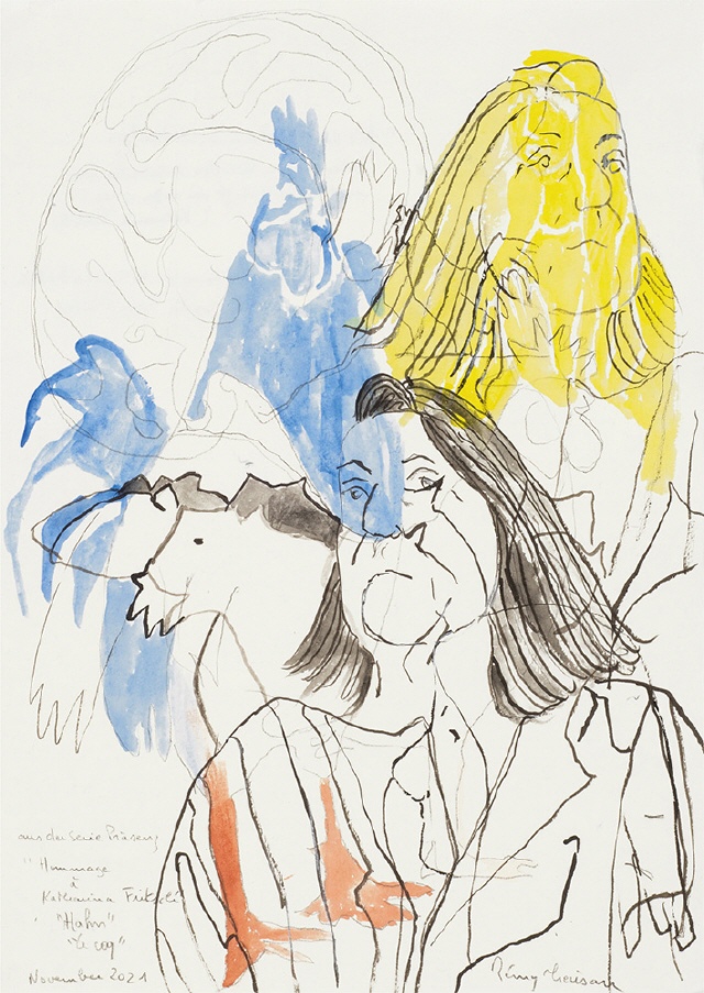 Hommage an Katarina Fritsch 2021 Mischtechnik auf Büttenpapier 42 x 29,7 cm |