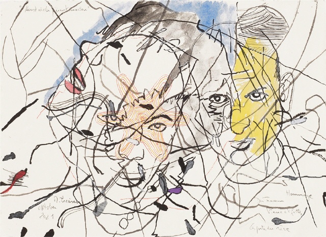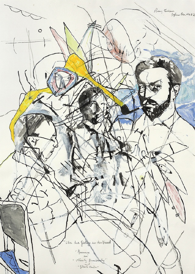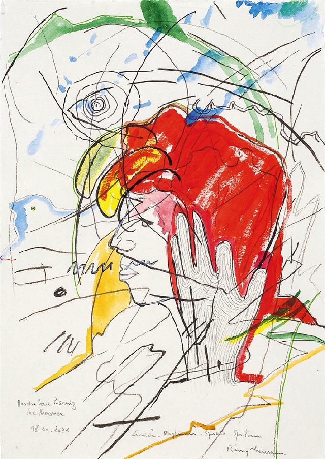 Hommage an Rebecca Horn 2021 Mischtechnik auf Büttenpapier 42 x 29,7 cm Sammlung des Landkreises Rottweil |