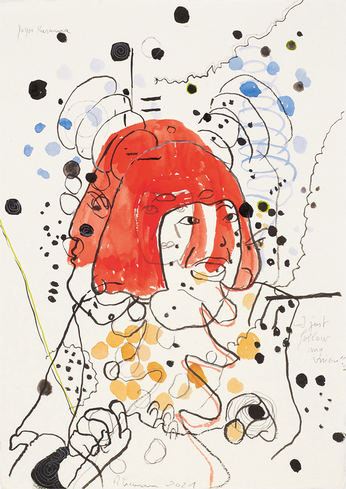 Hommage an Yayoi Kusama 2021 Mischtechnik auf Büttenpapier 42 x 29,7 cm |