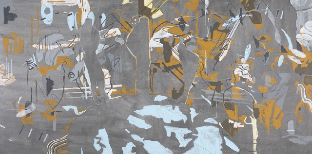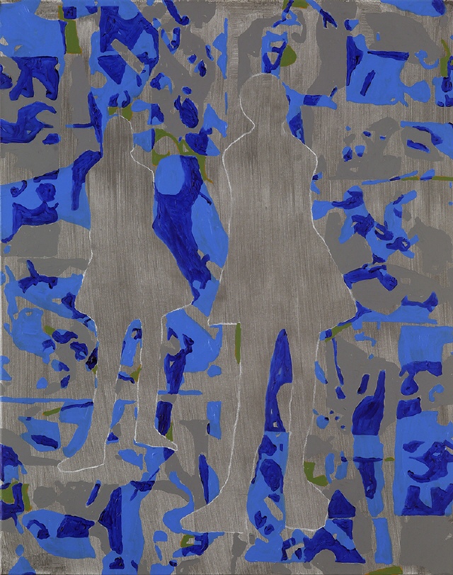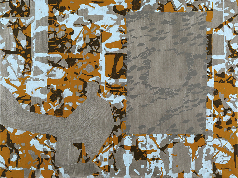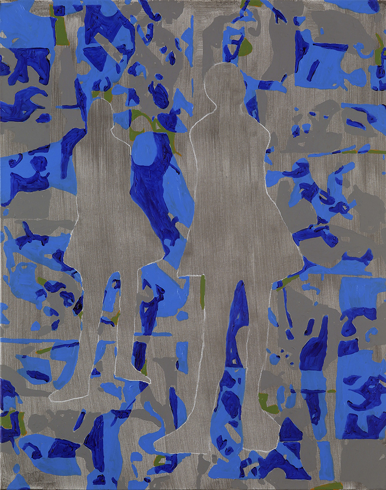 Drei gebeugte Silhouetten 2020/21 Mischtechnik, Pigment, Leinwand 100 x 200 cm |